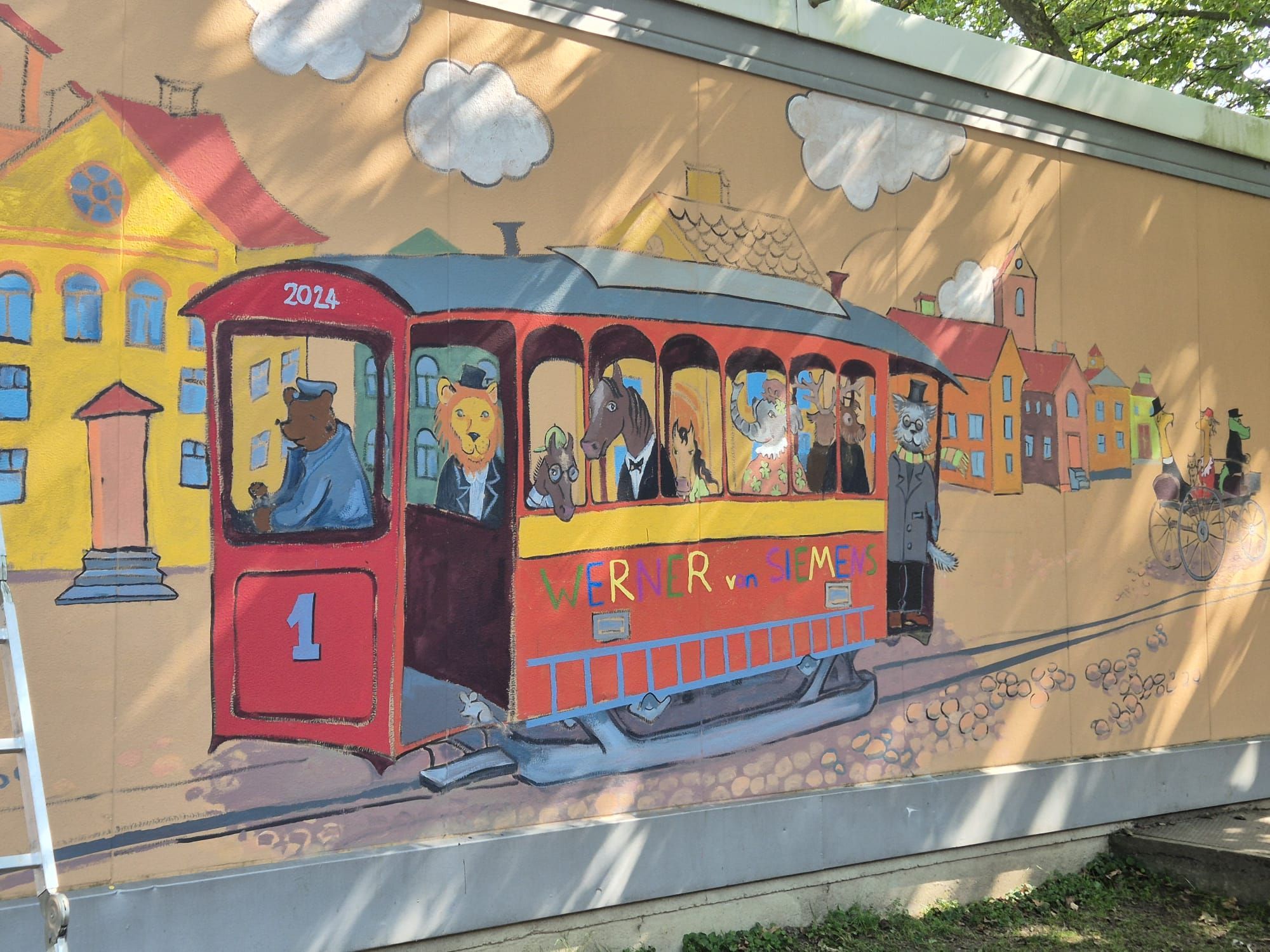 Ob großflächige Wandgestaltung, Projekte mit Ton oder Ölkreiden, jedes Kind kann sich dabei nach seinen Möglichkeiten entfalten und die Freude am Gestalten ausleben.