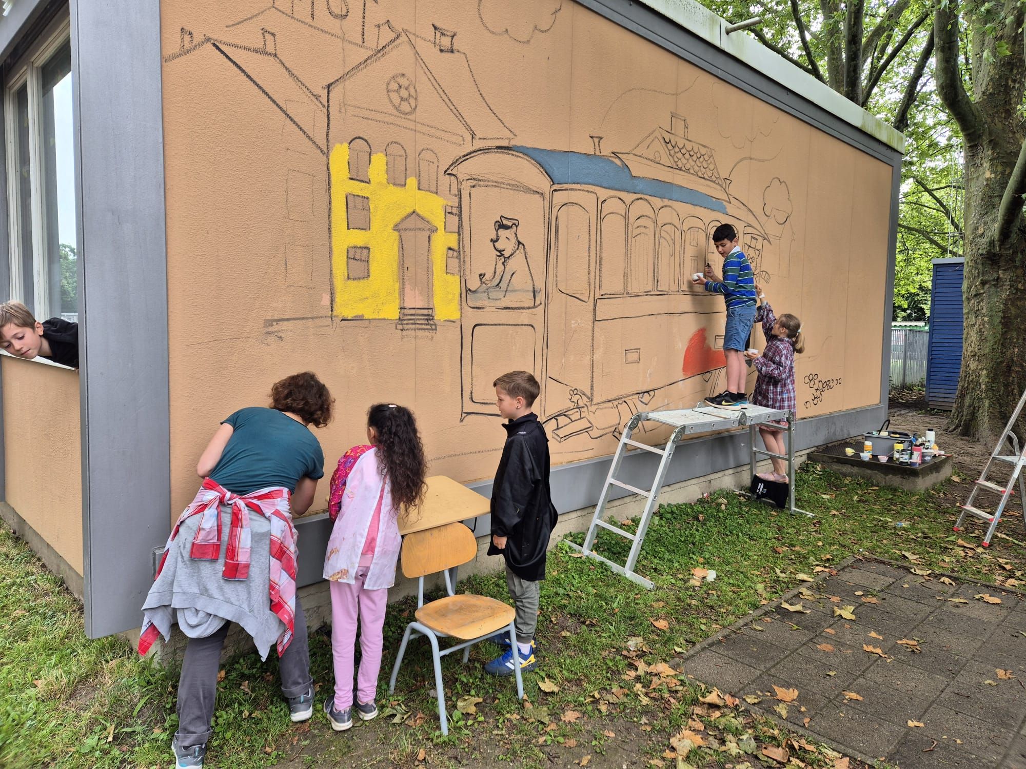 Seit dem Schuljahr 23/24 werden nun drei Schulklassen einmal in der Woche für zwei Schulstunden durch die Künstlerin Olga Sora-Lux in die kreative Welt der Kunst eingeführt.