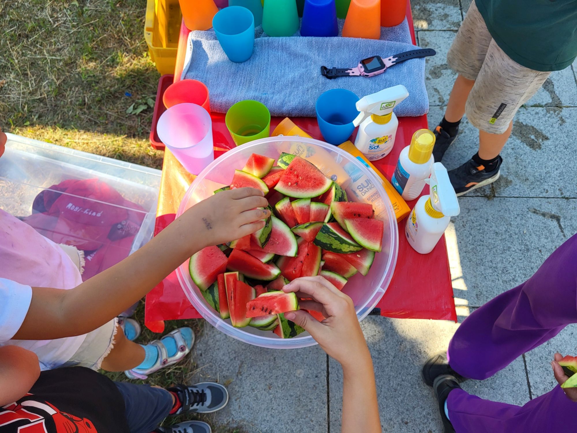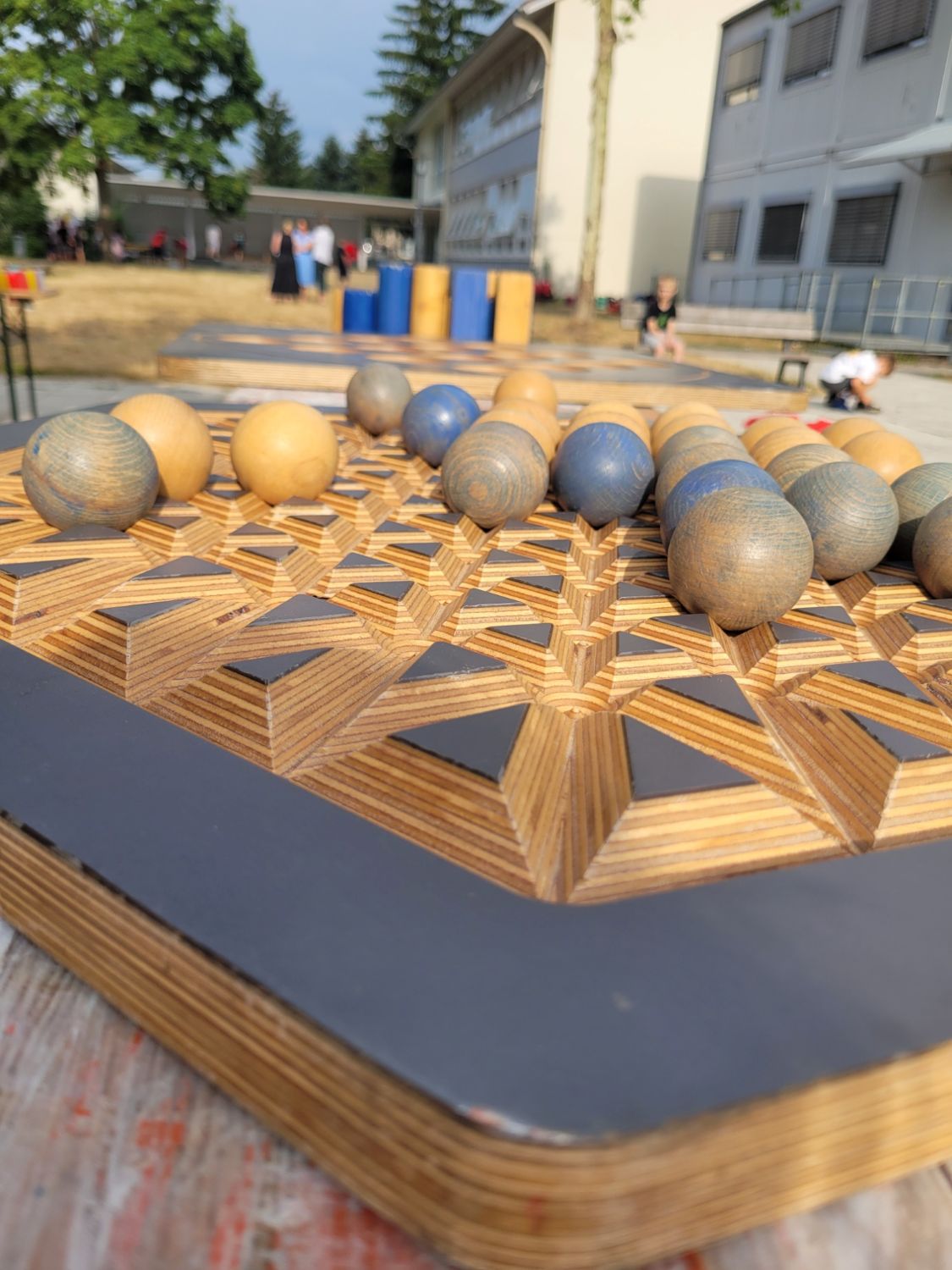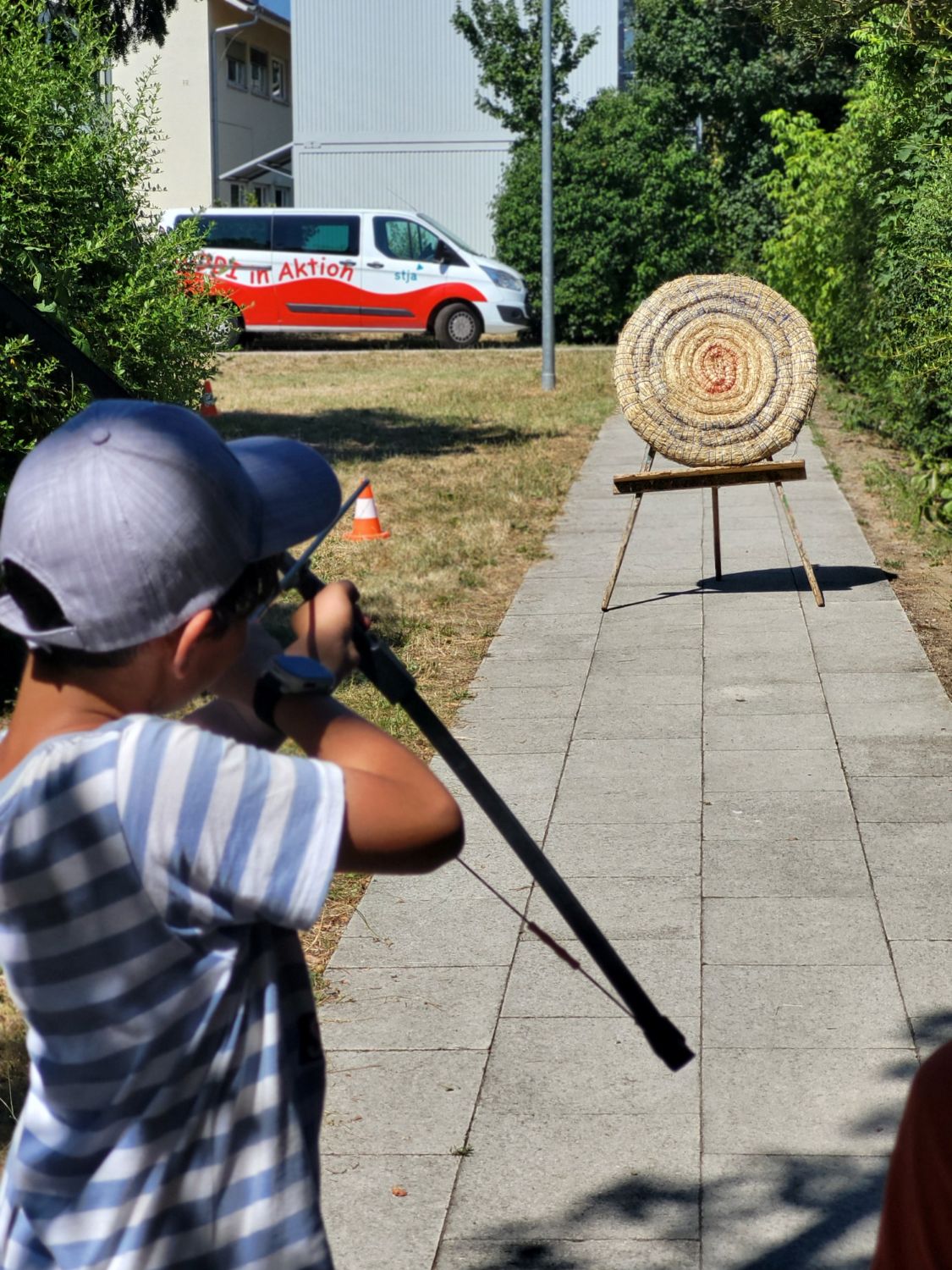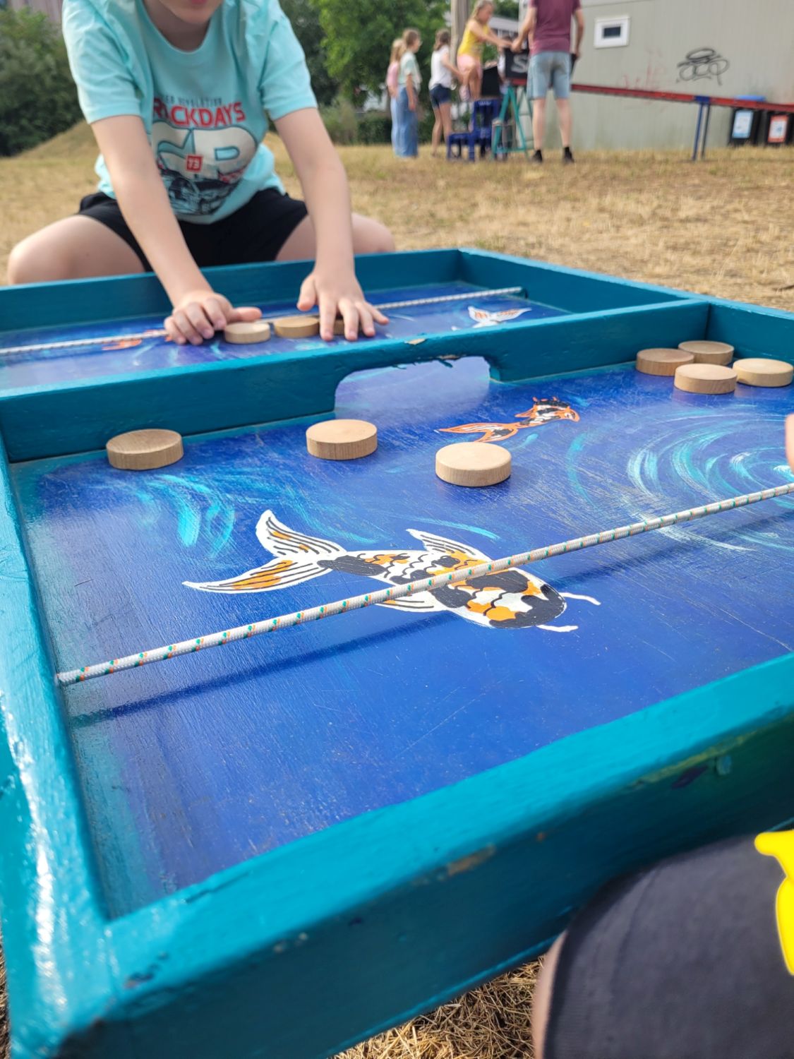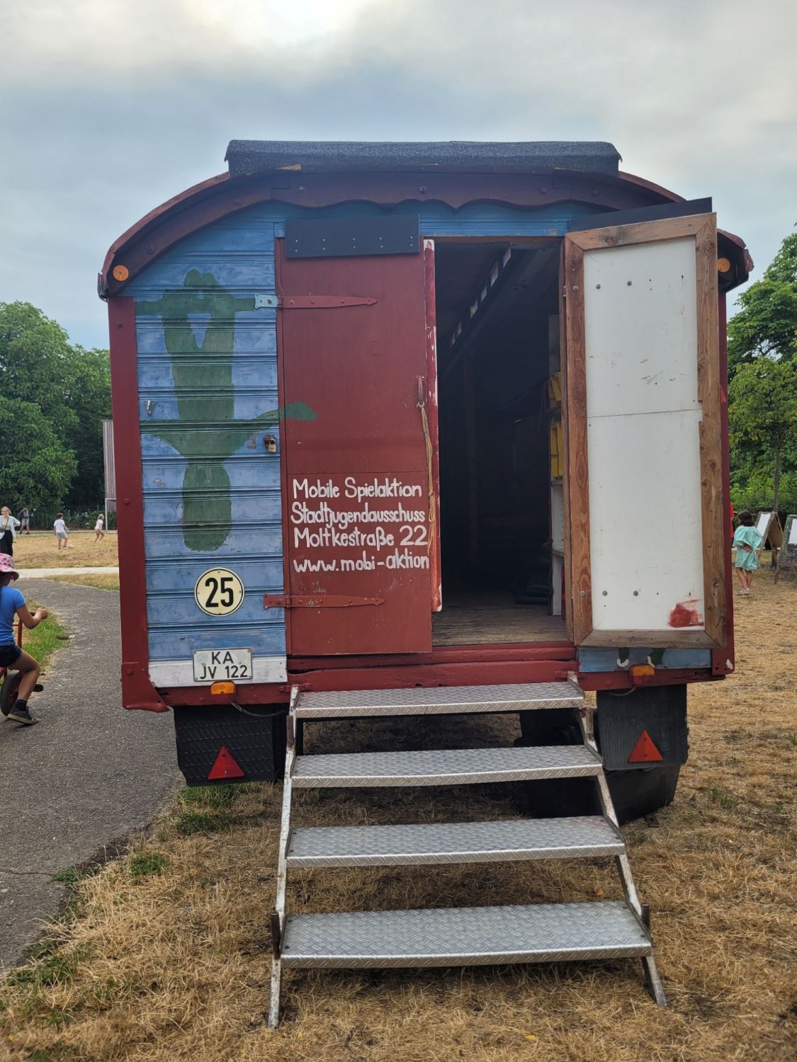 Am 2. und 3. Juli 2025 kamen die Mitarbeiter der Mobilen Spielaktion morgens mit ihren Materialien auf das Schulgelände im Anebosweg und bauten dort ihre Stationen auf.
