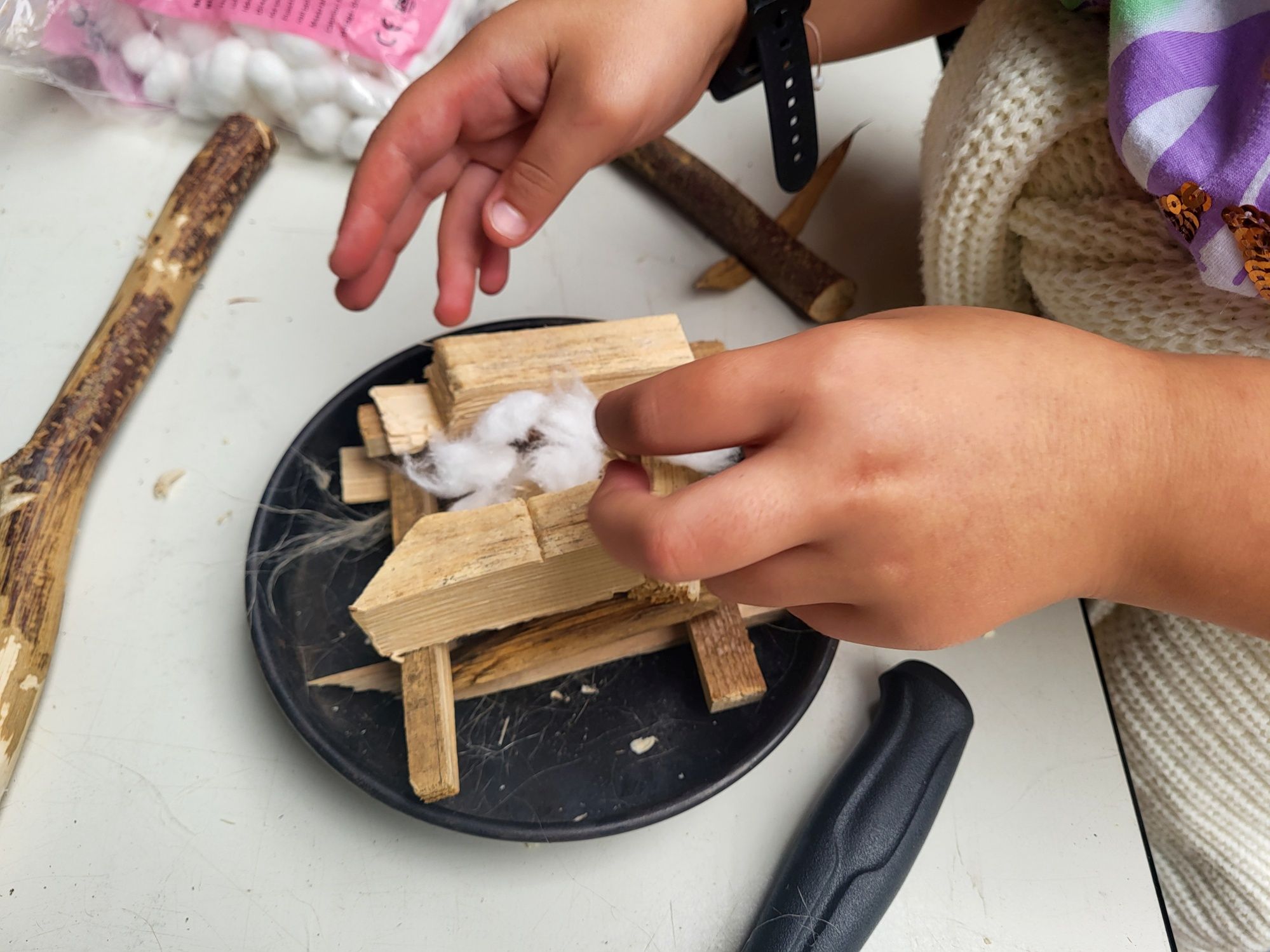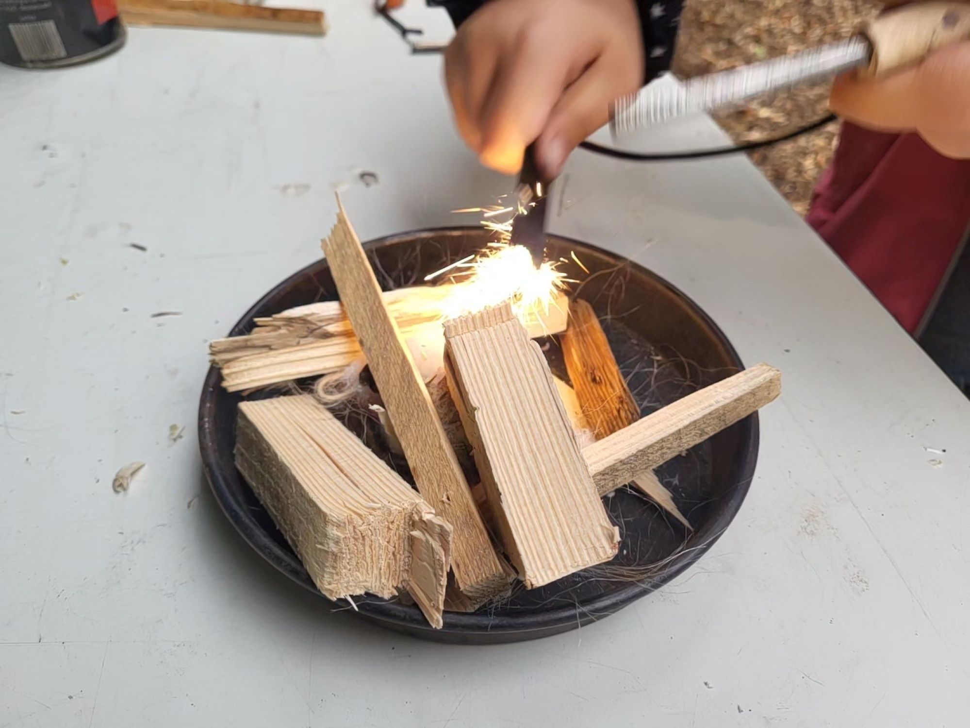 Ein besonderes Highlight war das Entfachen von Feuer mit dem Feuerstahl. Die Kinder waren fasziniert von der Kunst, ein Lagerfeuer sicher zu entzünden. Anschließend gab es die Gelegenheit, ihr eigenes Stockbrot über den Flammen zu rösten.