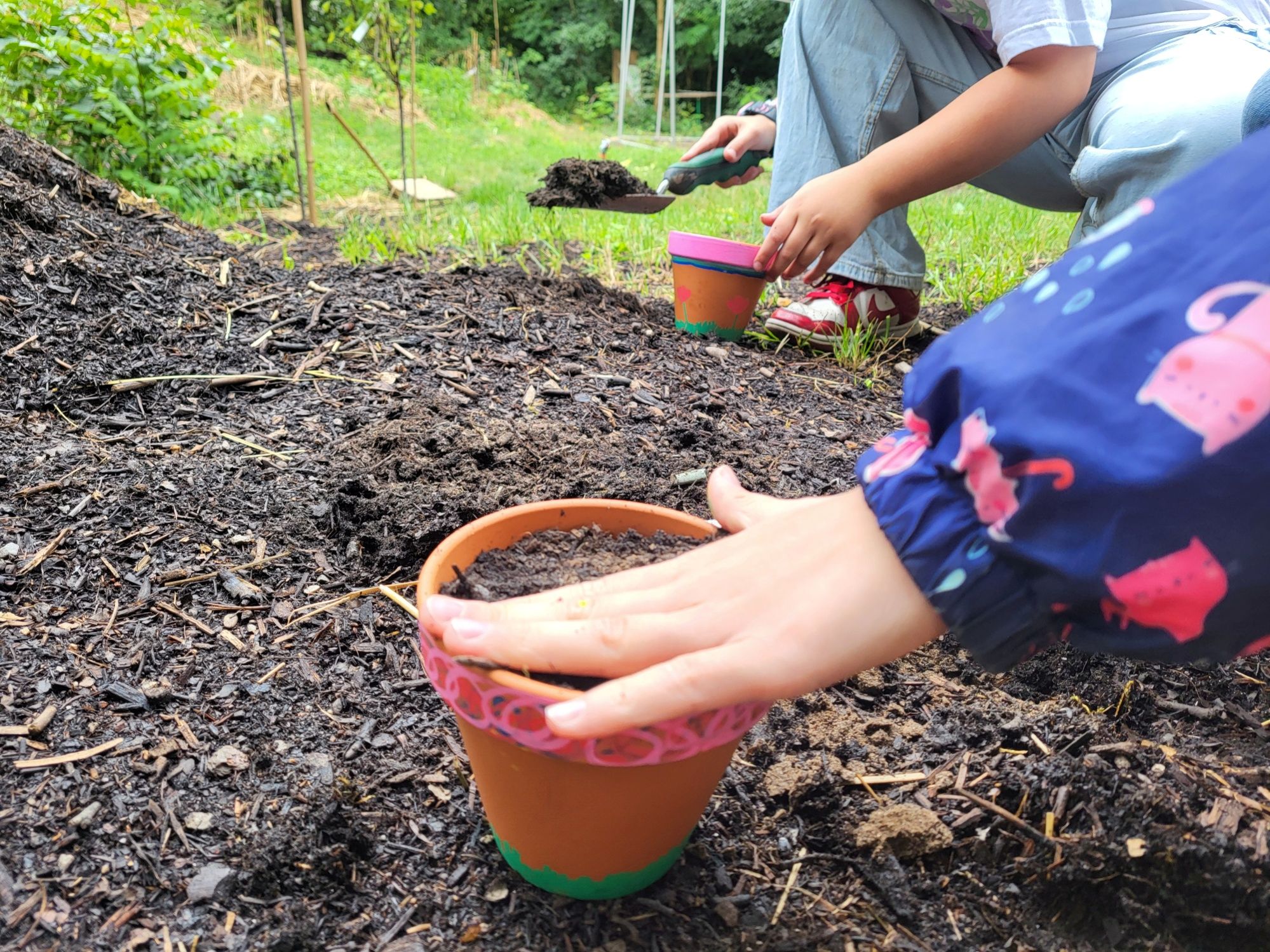 Kreativität kam ebenfalls nicht zu kurz. Beim Bemalen von Blumentöpfen zeigten einige ihr Talent und säten anschließend Wiesenblumen, die hoffentlich bald blühen.