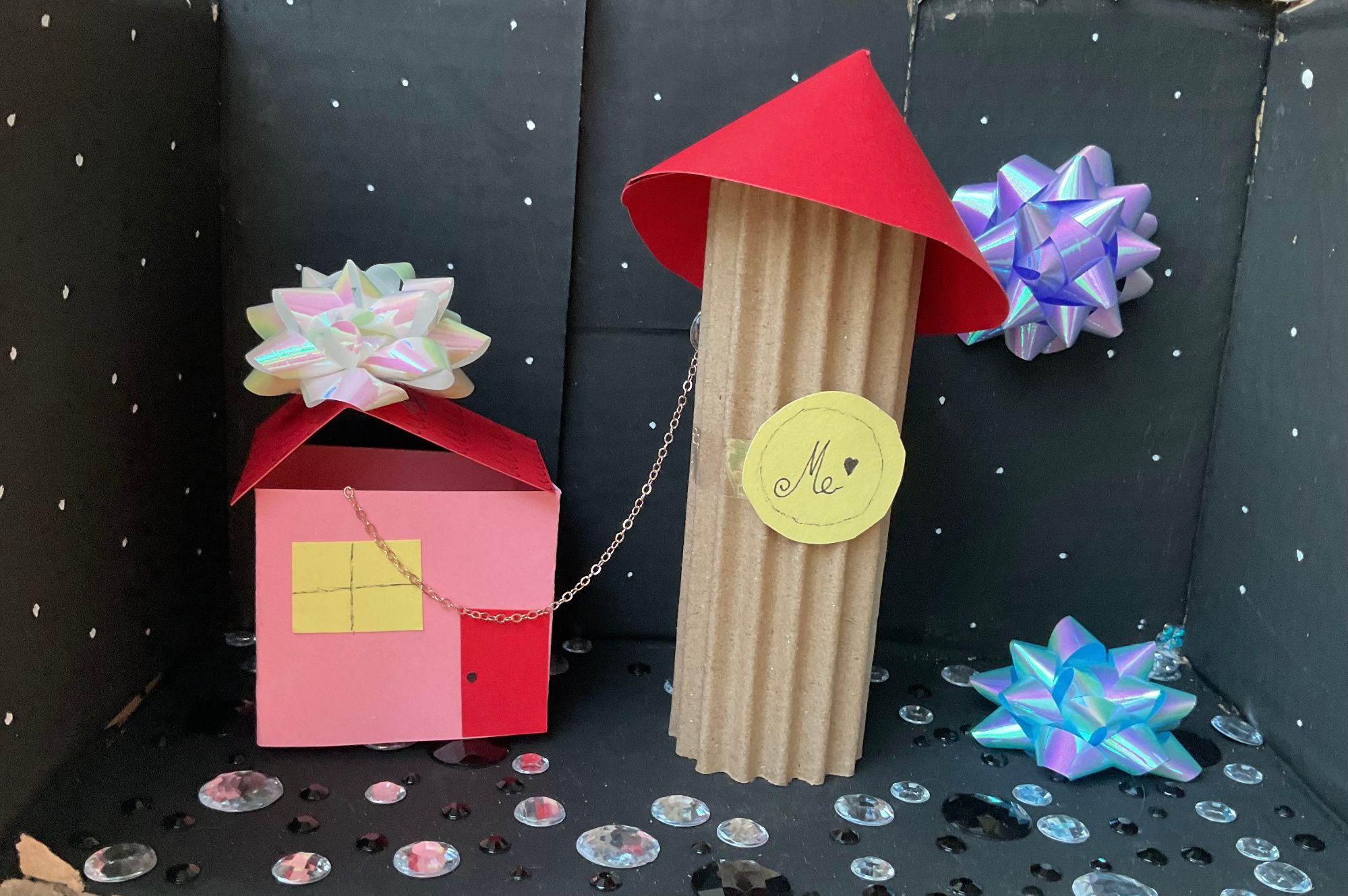 „In meiner Box zeige ich, was für mich ein gelingendes und glückliches Leben bedeutet. Ich habe Dinge gewählt, die sowohl meine persönlichen Werte, als auch meine Zukunftswünsche darstellen. Dazu gehören zum Beispiel Selbstvertrauen, Weisheit und sich immer zu verbessern, weil ich als Mensch wachsen und nie aufgeben will. Arbeit, Geld, ein Haus und ein Auto stehen für Sicherheit und Stabilität im Leben. Ruhe, Harmonie und Musik sind mir wichtig, weil sie mir Frieden geben. Am aller wichtigsten sind für mich jedoch Familie, Gesundheit und meine Freunde. Ohne diese Dinge wäre ein wirklich glückliches Leben für mich nicht möglich. Diese Box zeigt, wer ich bin und was mir im Leben wichtig ist. Sie erinnert mich daran, meine Werte nicht zu vergessen, meinen eigenen Weg zu gehen und hilft mir, mich auf das Wesentliche zu konzentrieren“ Schüler 10a.