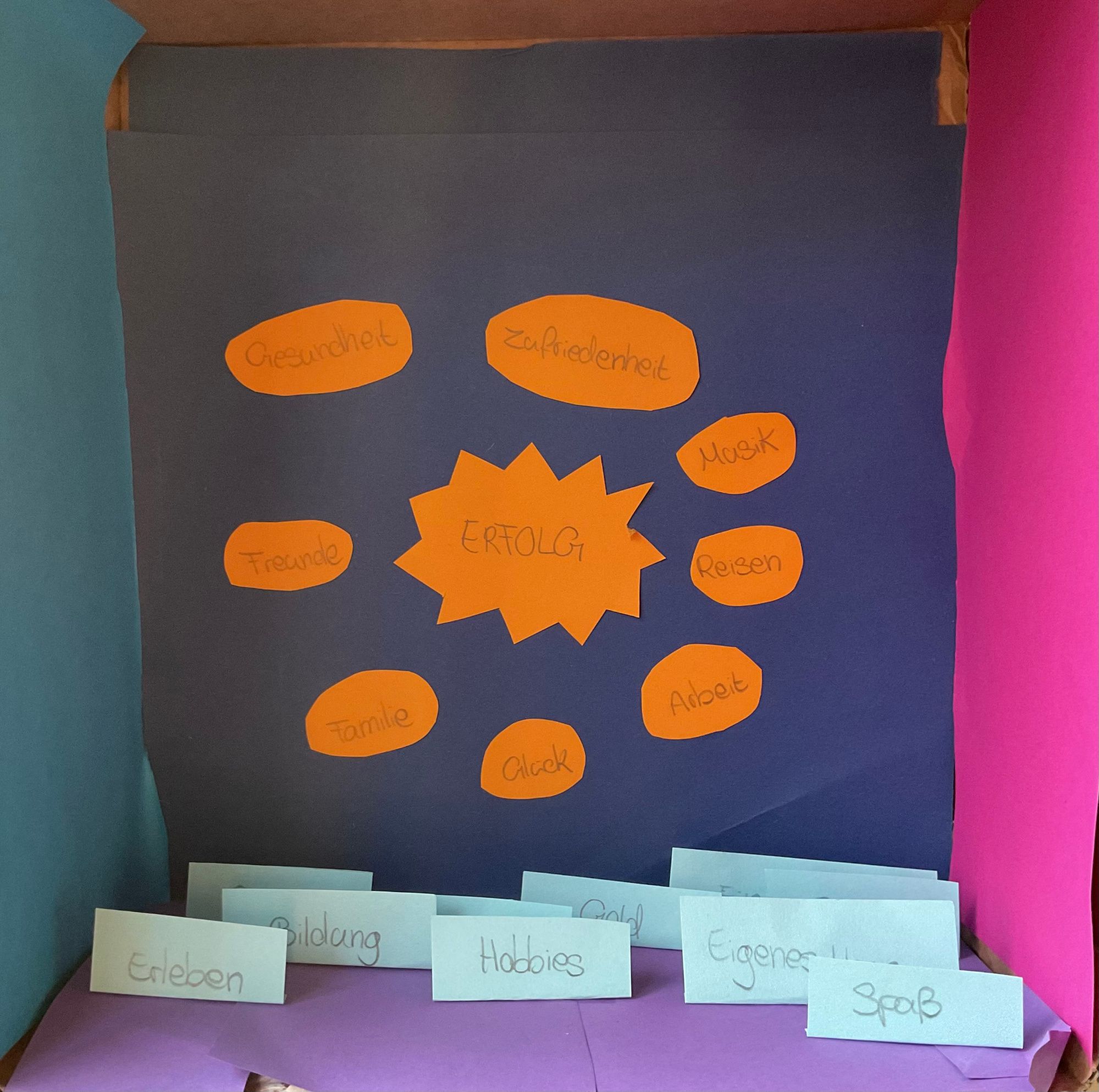 Unter dem Titel „Mein gelingendes Leben in der Box“ haben sich die Jugendlichen intensiv damit beschäftigt, welche ganz persönlichen Wünsche und Ziele sie für ihr Leben haben. Durch vielfältige Methoden haben die Schülerinnen und Schüler herausgearbeitet, welchen Stellenwert die einzelnen Ziele für sie einnehmen, sich also die Frage gestellt „Was ist mir für mein Leben eigentlich am wichtigsten?“.